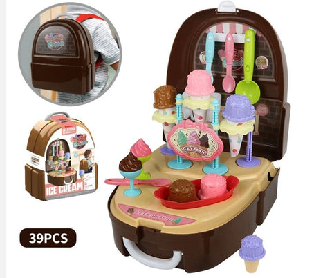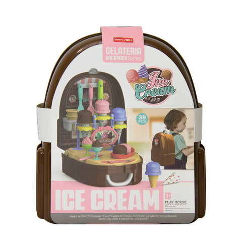 The Gelato Backpack Playcase - For any child that loves gelato and all things sweet. This playcase backpack is the next best thing- and this play case can be played with both indoors and outdoors! The set is portable and can be taken along on outings and for sleepovers. The Gelato backpack comes in a nifty case that doubles as a backpack and youll find everything you need to make your gelato ice cream inside. The set has 39 pieces.Its a wonderful way for your child to engage in imaginative role-play. It also increases their motor skills and knowledge of cooking. When your child is finishing playing, everything can be neatly stored and carried away by the handle.
