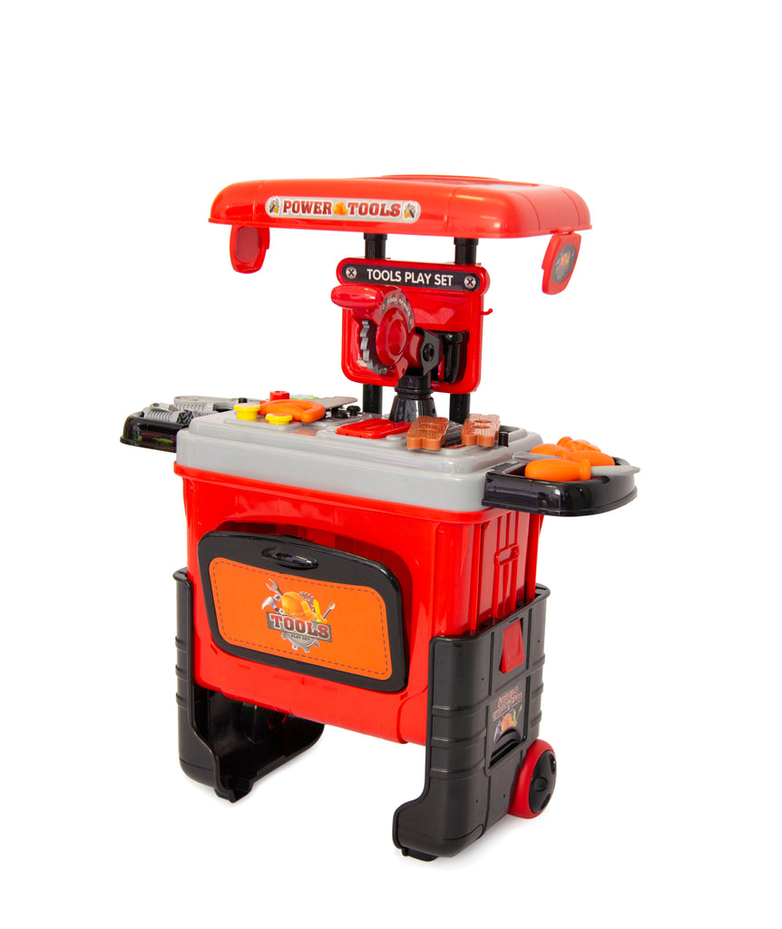 Looking to help mom and dad around the house with fixing and maintaining the house, well now you can help with your very own set of tools and tool case. Child friendly house hold fixing tools to make the kids feel involved and handy! This fold up tool set toy allows kids to use the tools, build on the fold out plastic shelving and stock tools in the tool shed compartment. Easy to use and the set folds away into a rolling trolley to be easily transported or stored. This gift is certainly able to entertain a few at a time and enables kids to use their motor skill ability and cognitive thinking to be able to fix anything round the house. Useful from ages 3 up.
