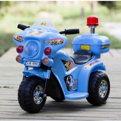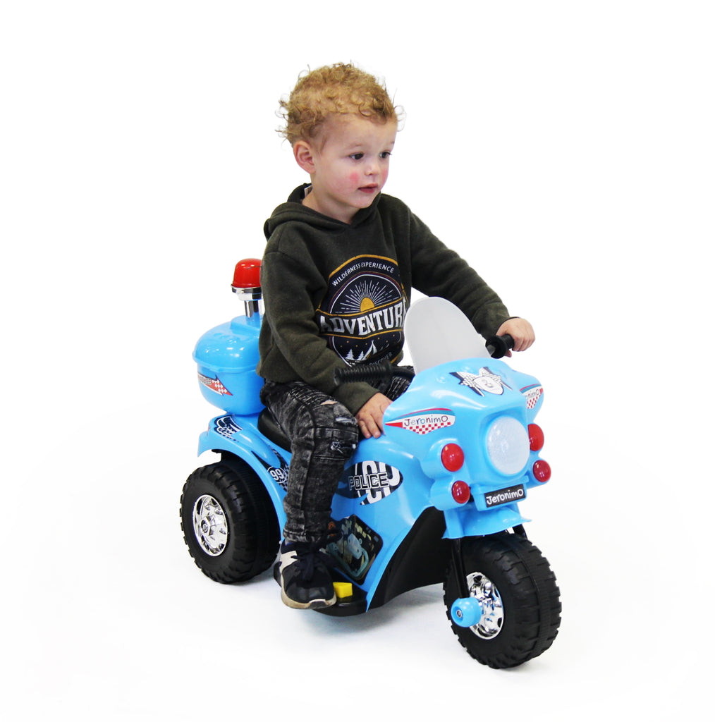 Let your little one has a turn in the drivers seat with the Jeronimo Police Bike. Your child will ride in style with all the motorbikes amazing features such as a button which plays fun sounds, movable steering wheel and a 15W motor. With a 6V45AH battery operated motor this bike will reach around 3km/h. The Siren Police Bike can tolerate weight of up to 25kgs. We recommend that children under age 3 drive with adult supervision. Please charge the battery for 10 12 hours before use. Your little one will have hours of fun driving this exciting toy ride!