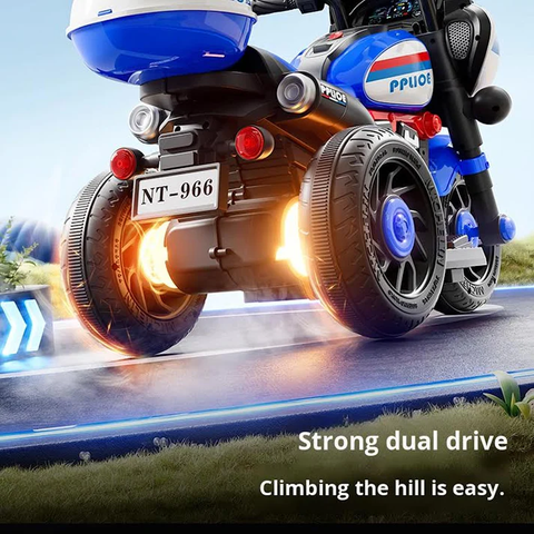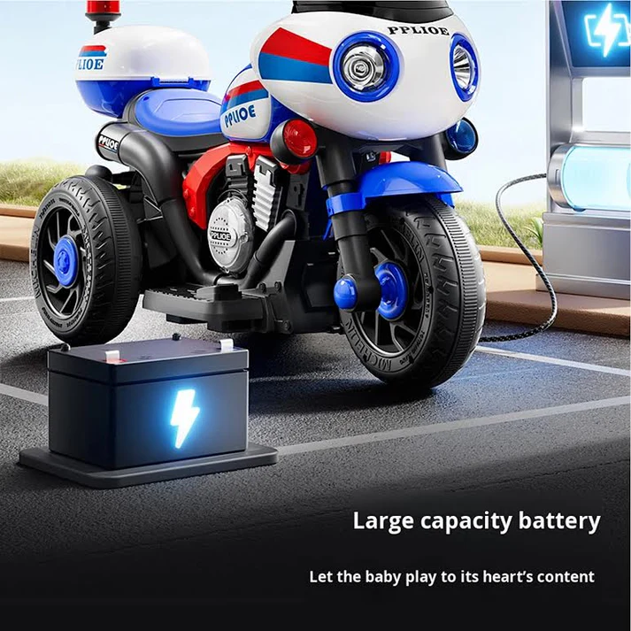 Let your child experience the thrill of law enforcement with this dynamic ride-on police bike. Featuring dual control modes—independent riding or parent-guided remote operation—it grows with your child's confidence and skills. The vibrant multicoloured design captures attention while realistic police styling sparks imaginative play. Built for safety and durability, this electric bike delivers hours of outdoor entertainment. Perfect for developing motor skills, balance, and independence while keeping parents in control when needed. Watch your little one become the hero of the neighbourhood.