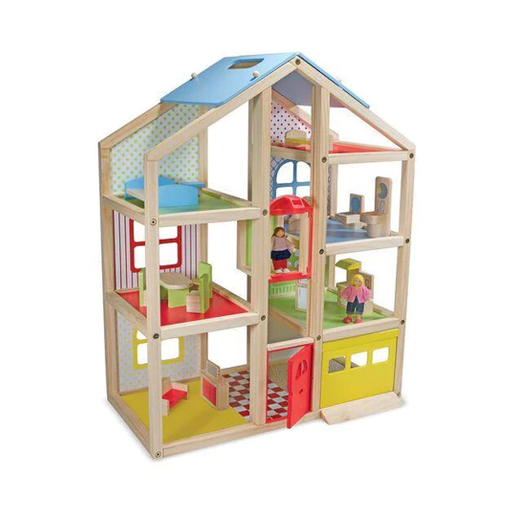 Enter the world of imaginative play with the Melissa & Doug Hi-Rise Wooden Dollhouse and Furniture Set. The modern masterpiece features spacious rooms, easy accessibility, and inclusive play. It includes 3 play people, 15 pieces of furniture, an elevator, and a garage for endless storytelling possibilities.