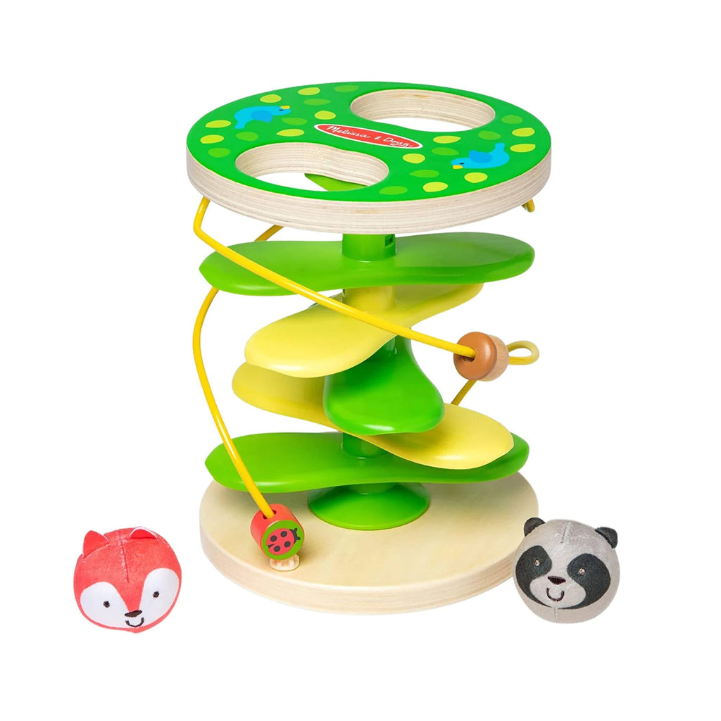 Unlock the door to imaginative forest adventures with Melissa & Doug's Rollimals Tumble Tree. This engaging playset introduces infants and toddlers to cause and effect, sensory exploration, fine motor skills, and problem-solving. With two round characters and a twirly treehouse, this toy is perfect for hands-on fun and learning.