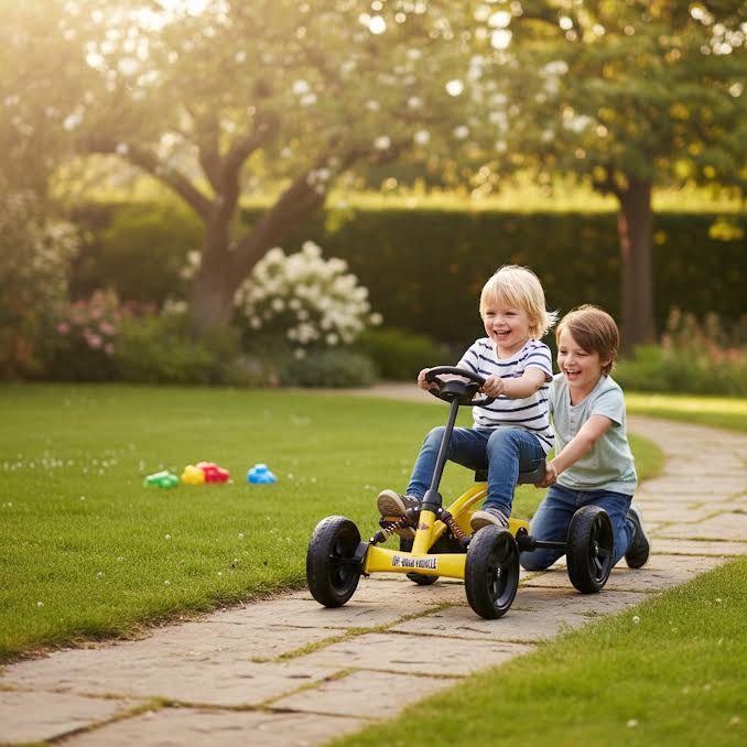 Get ready for endless fun with this vibrant yellow Pedal Go-Kart! Featuring both front and rear adjustable seats, it’s perfect for sharing the thrill of the ride with friends or family. Comfortable and easy to pedal, this go-kart lets kids of different sizes race and explore with joy. Bright, sturdy, and built for good times, it’s the perfect ride to zoom around the neighborhood in style!